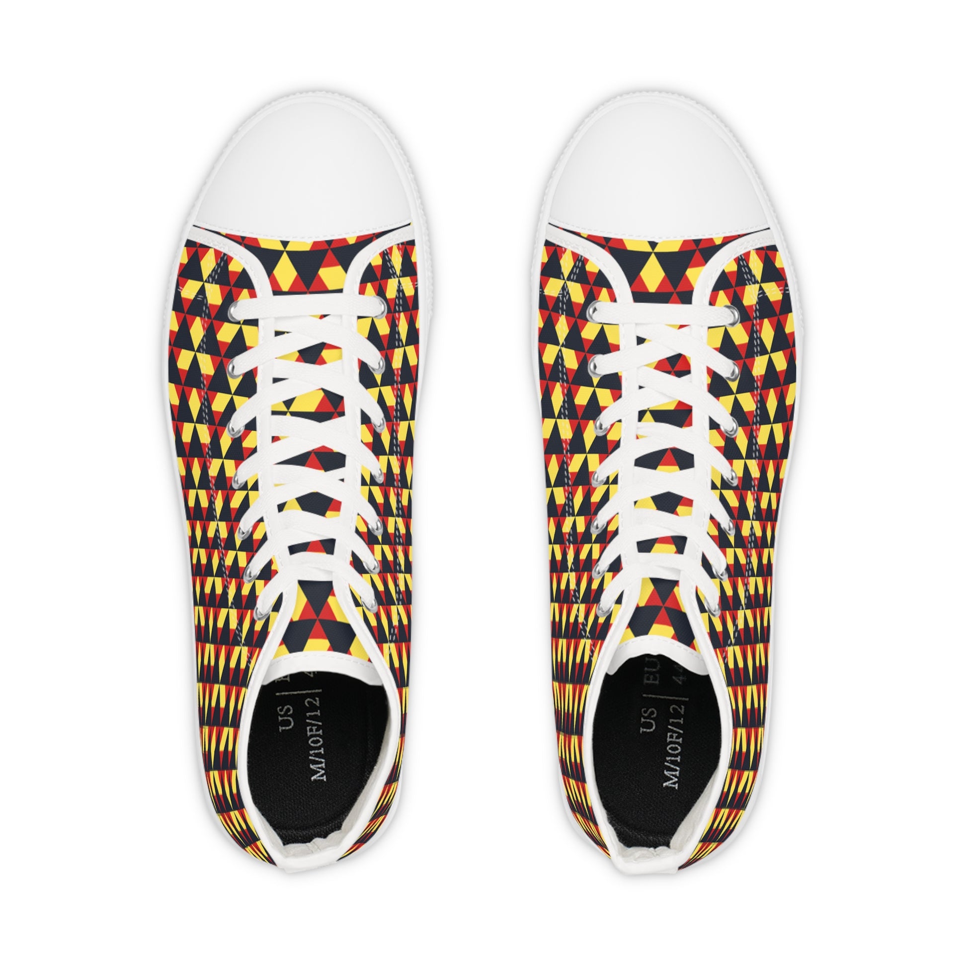 Made with breathable polyester canvas and featuring hi-poly deodorant memory foam insoles, these high top sneakers bear all the marks of an awesome shoe. Choose between black or white sole and laces, and enjoy the silver metal eyelets along with the lace-up closure.