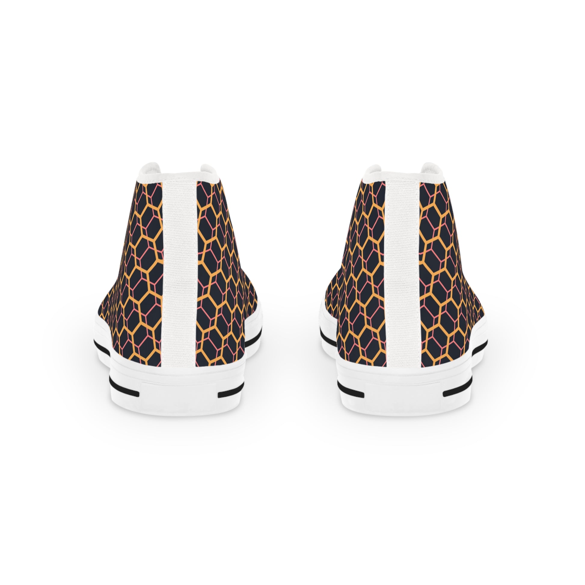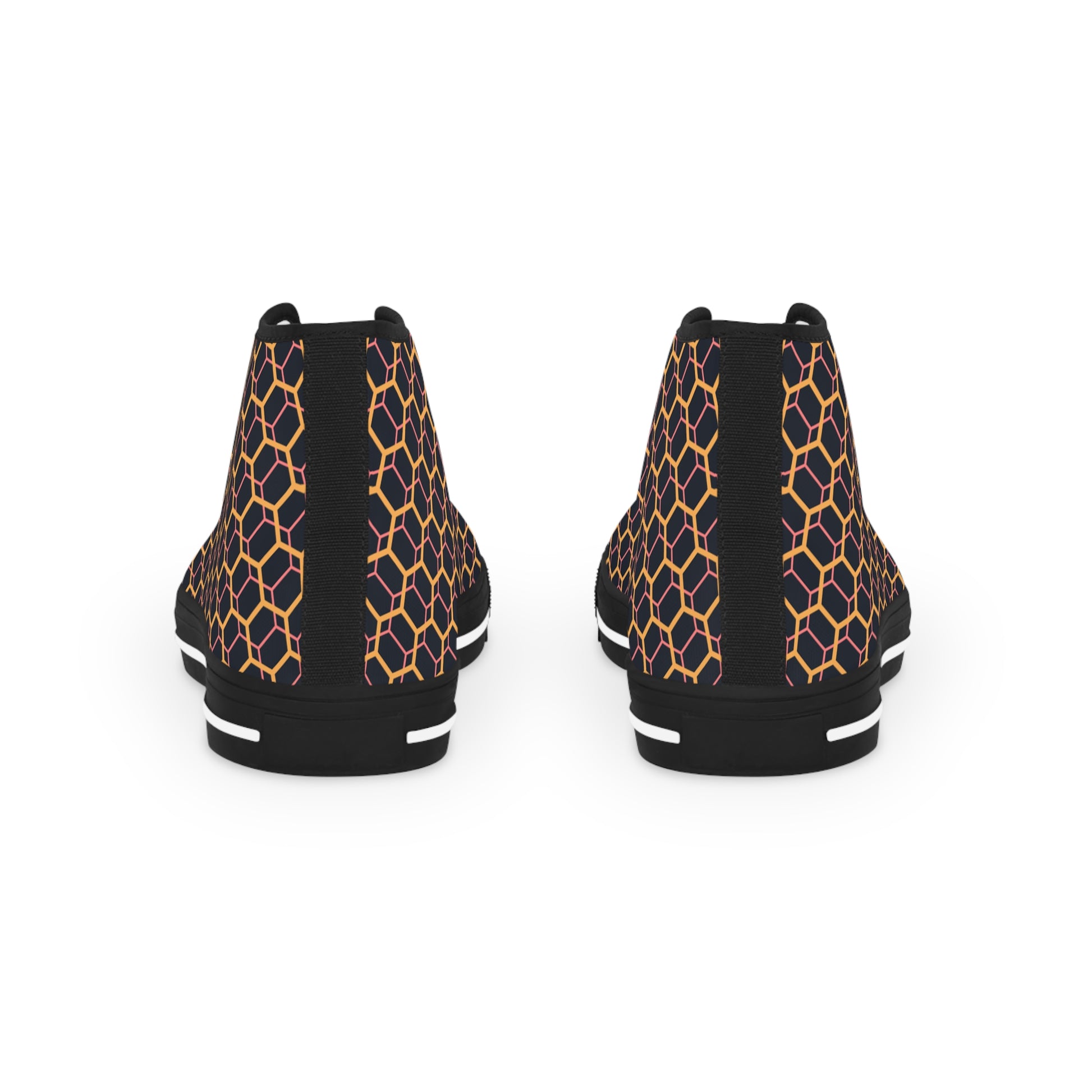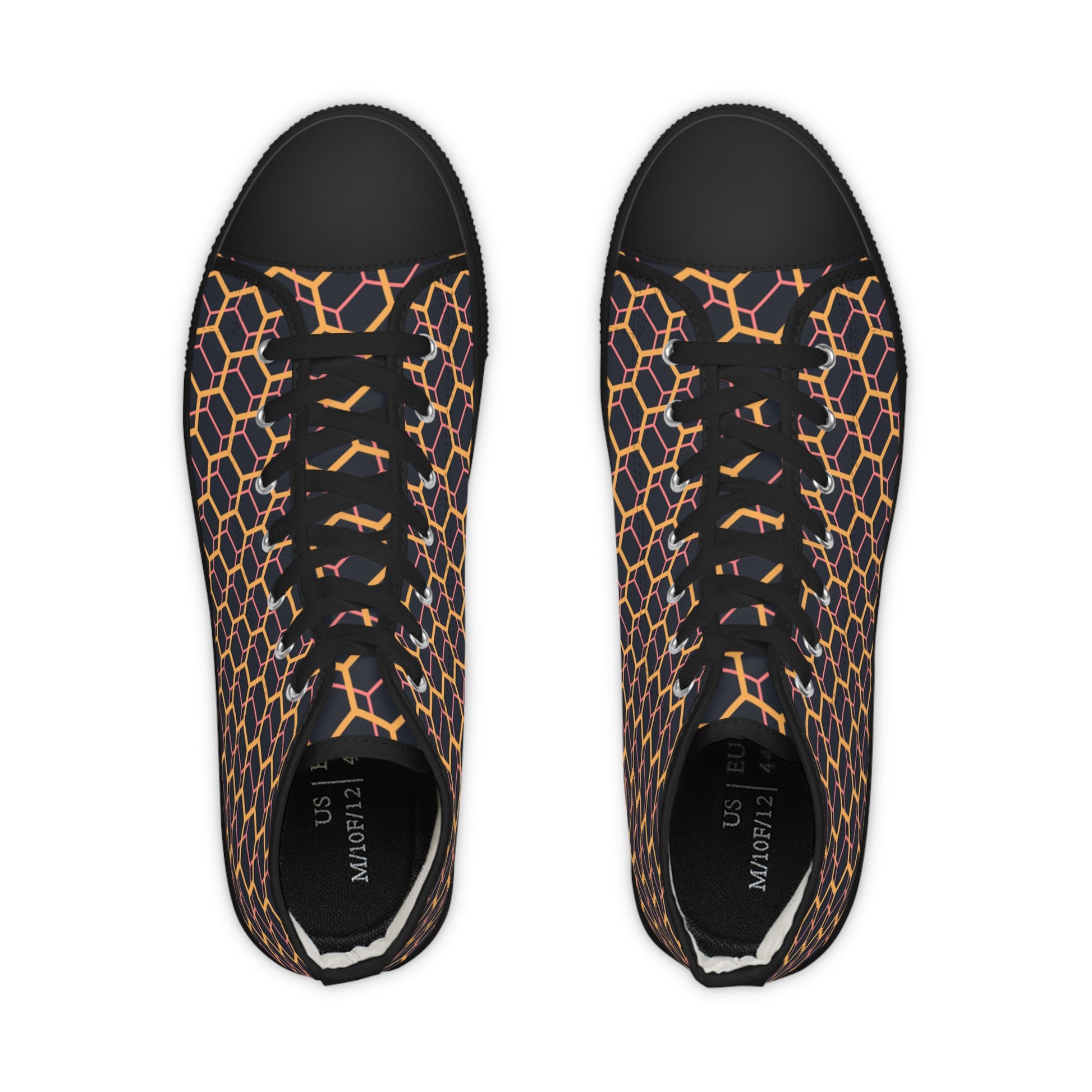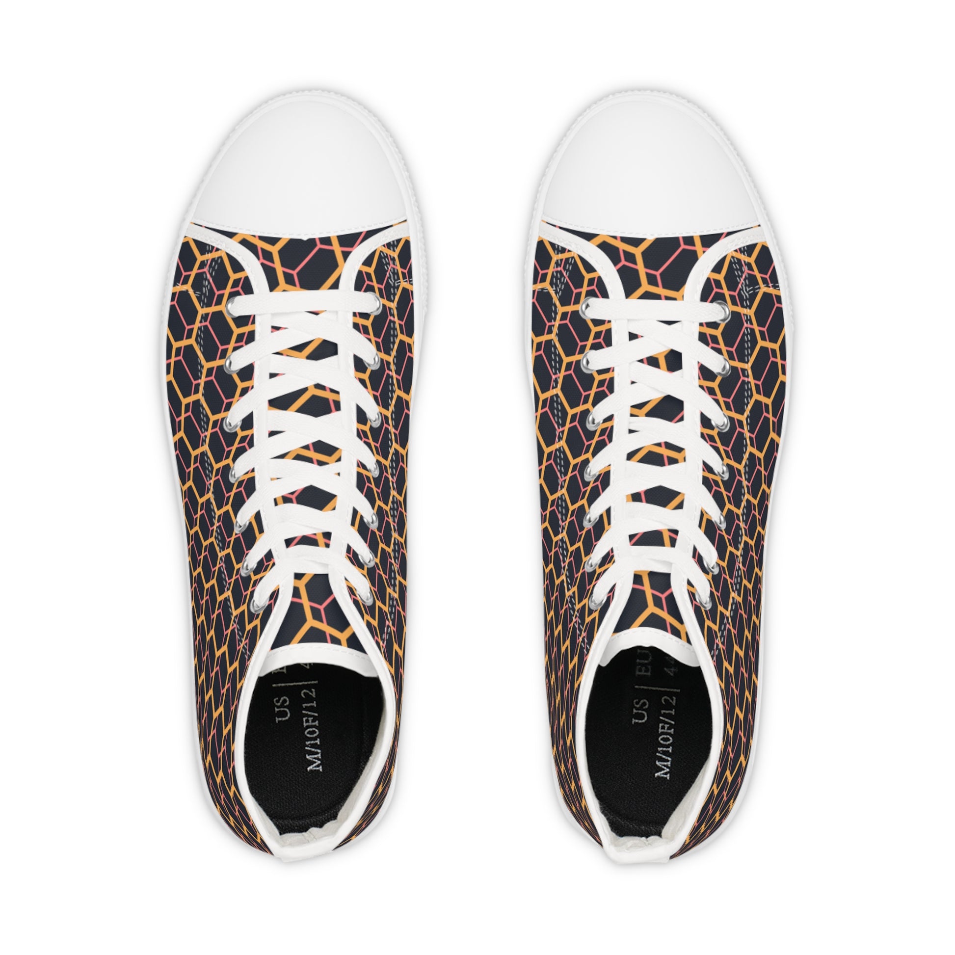 Made with breathable polyester canvas and featuring hi-poly deodorant memory foam insoles, these high top sneakers bear all the marks of an awesome shoe. Choose between black or white sole and laces, and enjoy the silver metal eyelets along with the lace-up closure.