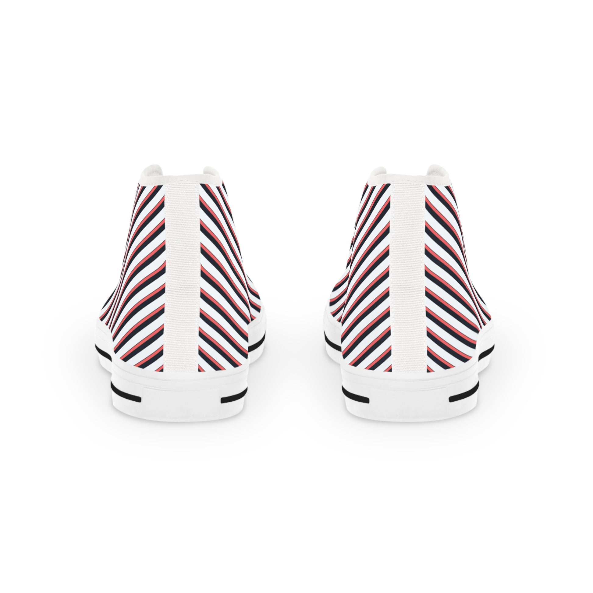 Made with breathable polyester canvas and featuring hi-poly deodorant memory foam insoles, these high top sneakers bear all the marks of an awesome shoe. Choose between black or white sole and laces, and enjoy the silver metal eyelets along with the lace-up closure.