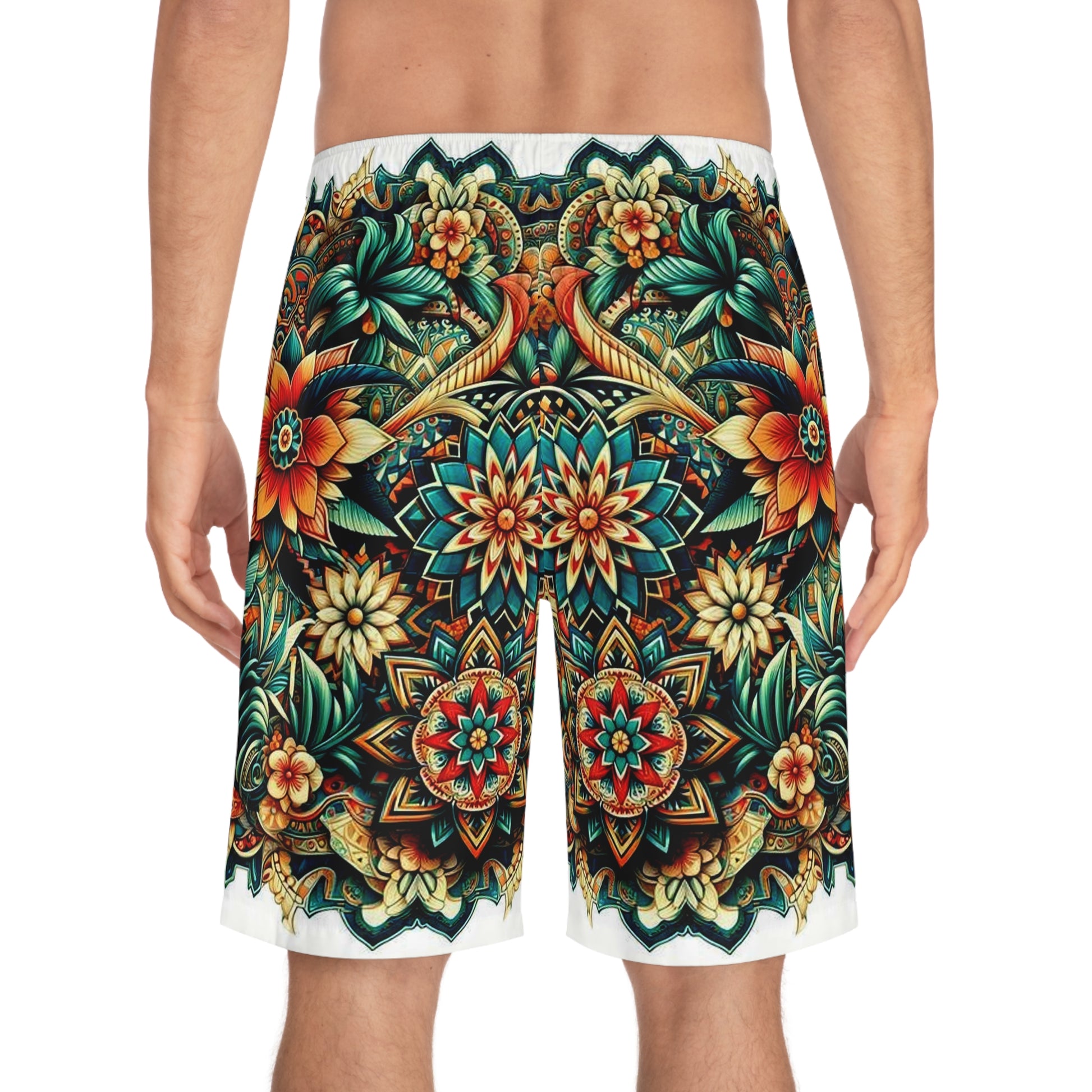 Add a personalized touch to your wardrobe with these custom board shorts for men. Made with light, breathable polyester fabric, these shorts feature 2 side pockets for daily convenience, an elastic waistband, and a black drawstring.