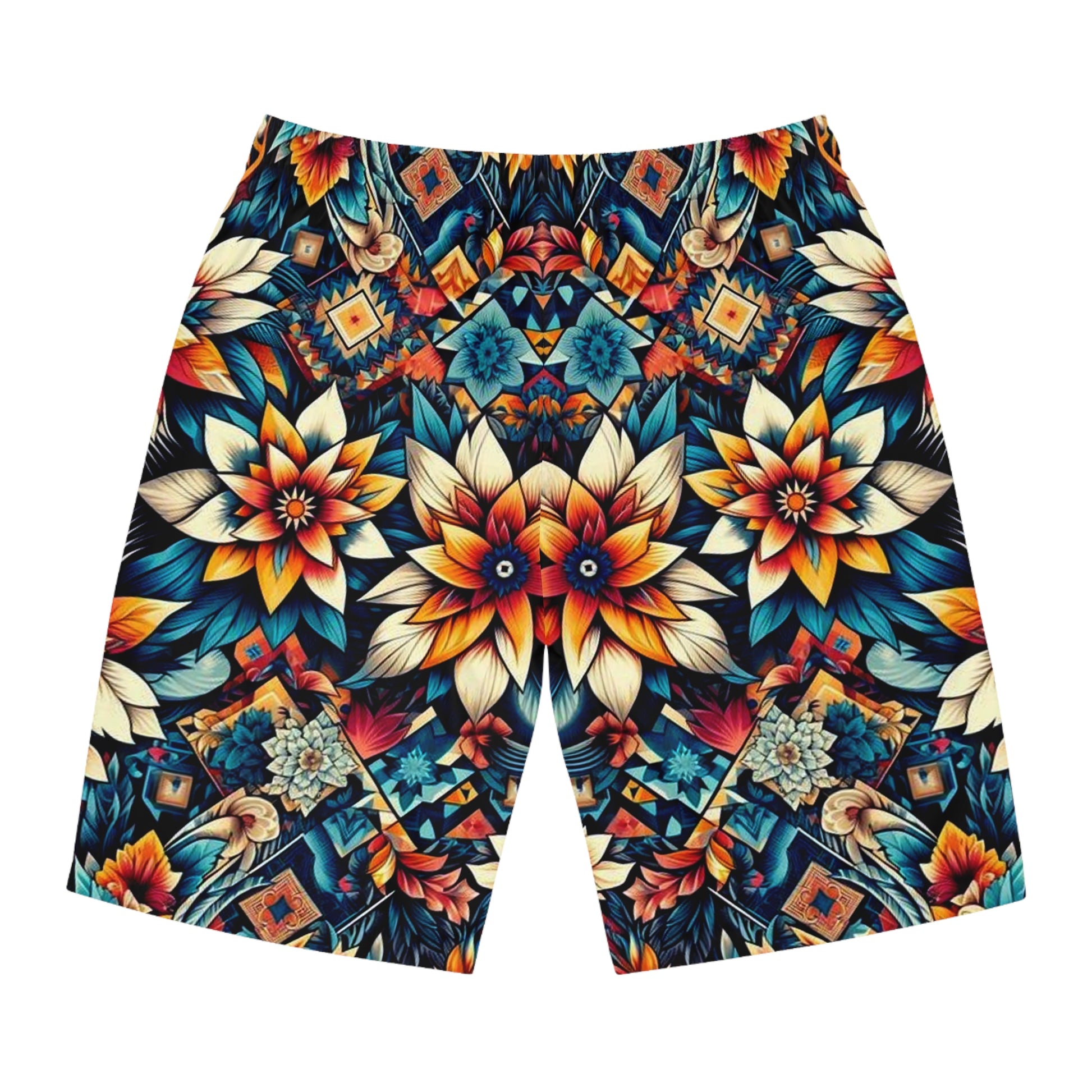Add a personalized touch to your wardrobe with these custom board shorts for men. Made with light, breathable polyester fabric, these shorts feature 2 side pockets for daily convenience, an elastic waistband, and a black drawstring.