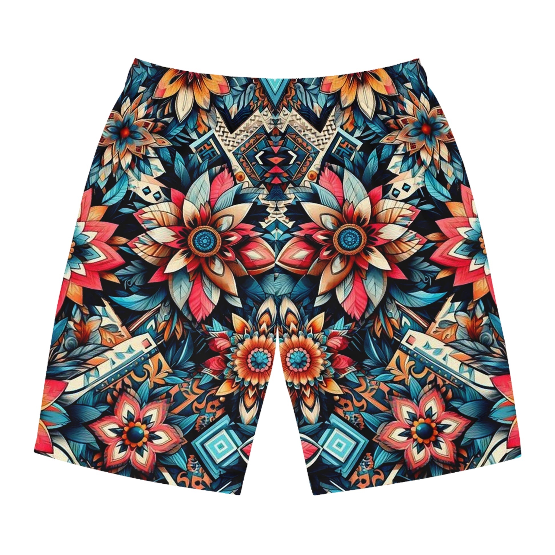 Add a personalized touch to your wardrobe with these custom board shorts for men. Made with light, breathable polyester fabric, these shorts feature 2 side pockets for daily convenience, an elastic waistband, and a black drawstring.