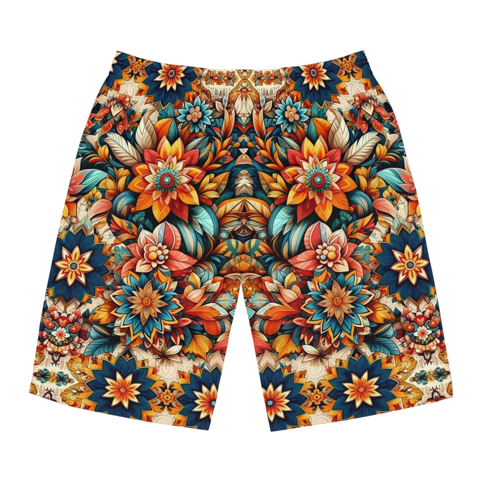 Add a personalized touch to your wardrobe with these custom board shorts for men. Made with light, breathable polyester fabric, these shorts feature 2 side pockets for daily convenience, an elastic waistband, and a black drawstring.