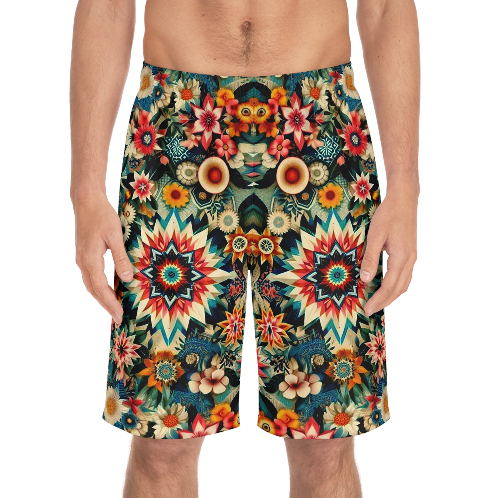 Add a personalized touch to your wardrobe with these custom board shorts for men. Made with light, breathable polyester fabric, these shorts feature 2 side pockets for daily convenience, an elastic waistband, and a black drawstring.
