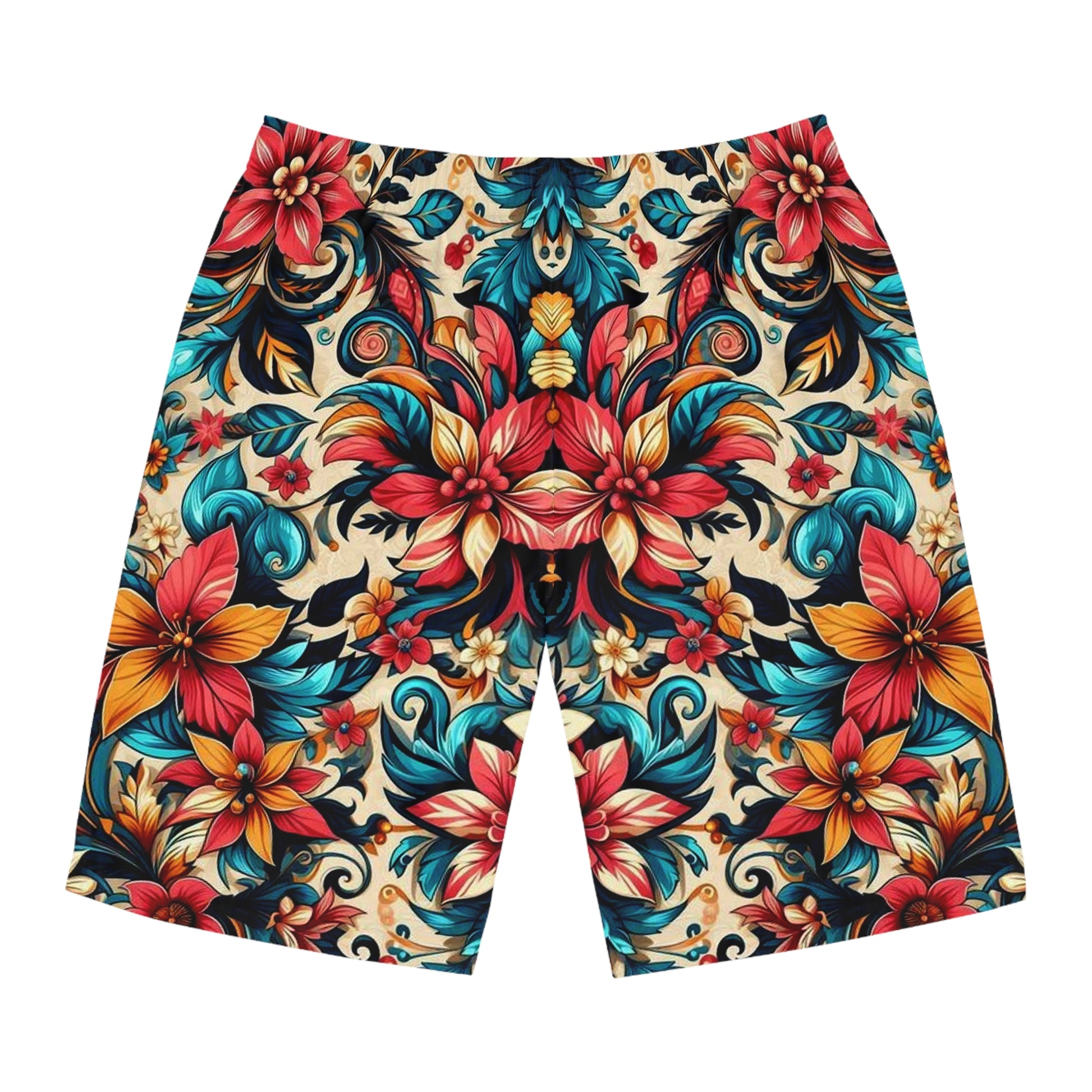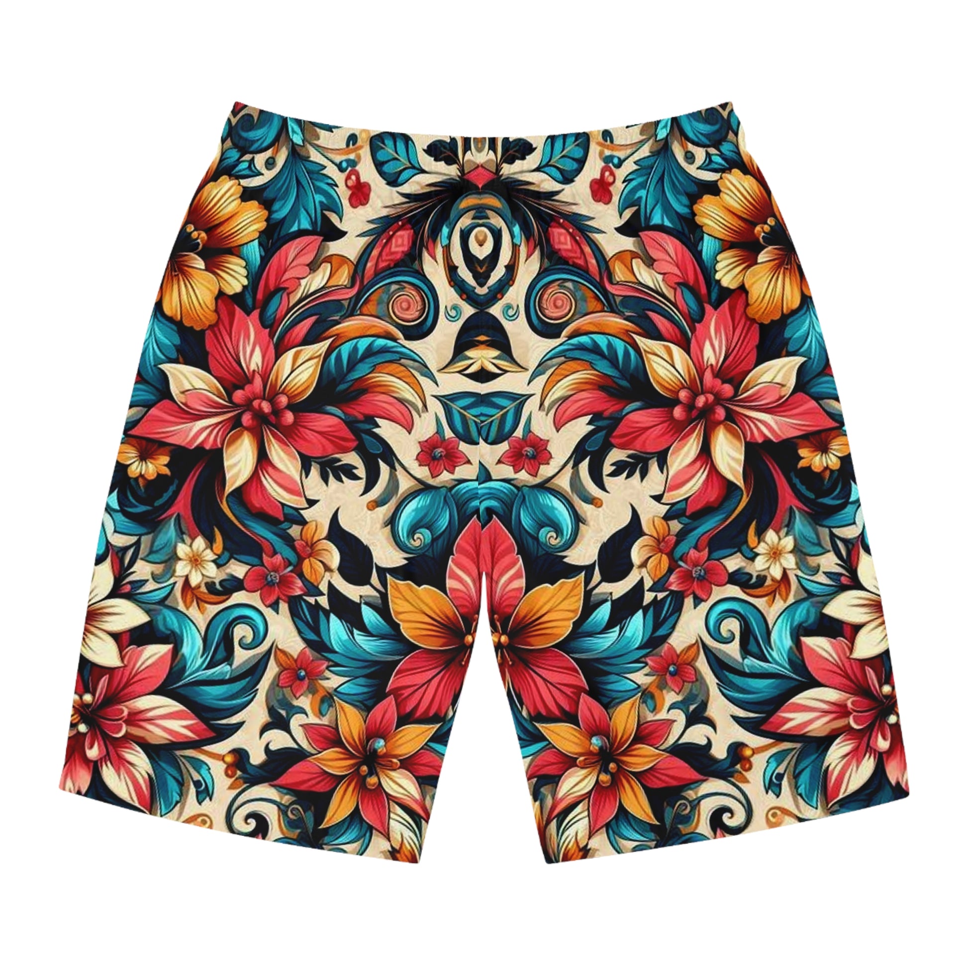 Add a personalized touch to your wardrobe with these custom board shorts for men. Made with light, breathable polyester fabric, these shorts feature 2 side pockets for daily convenience, an elastic waistband, and a black drawstring.