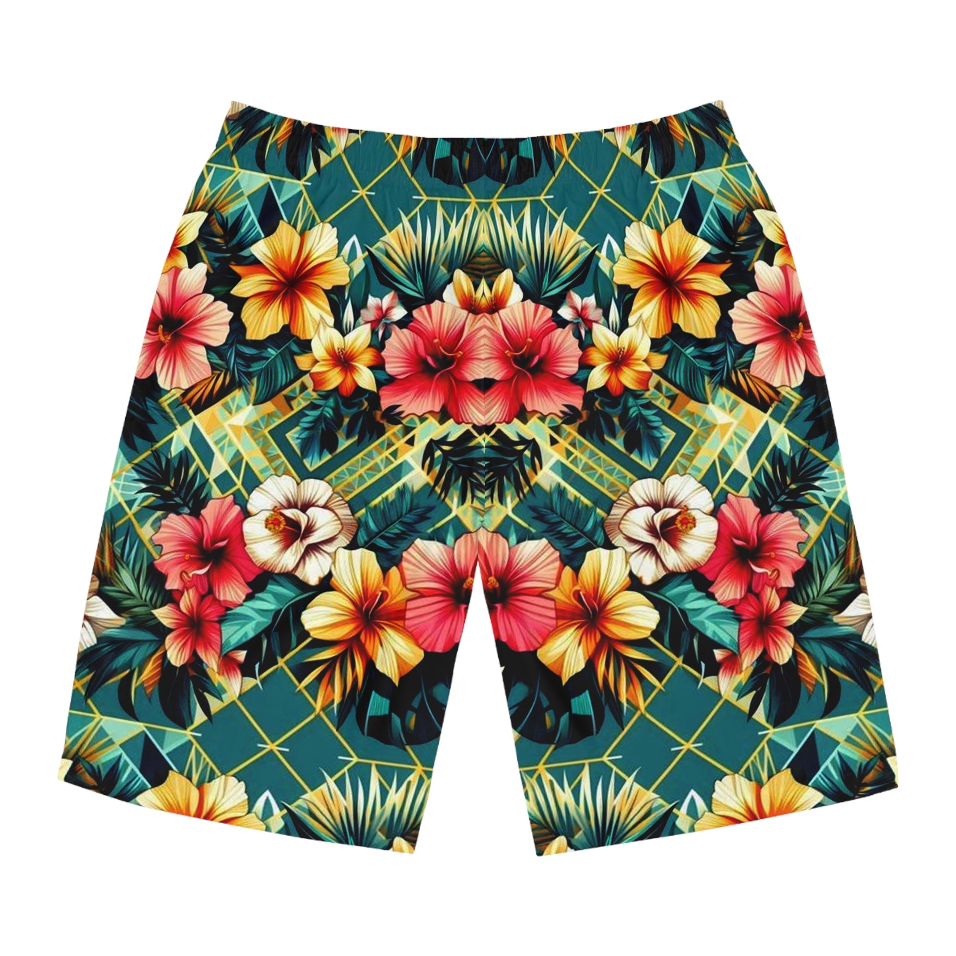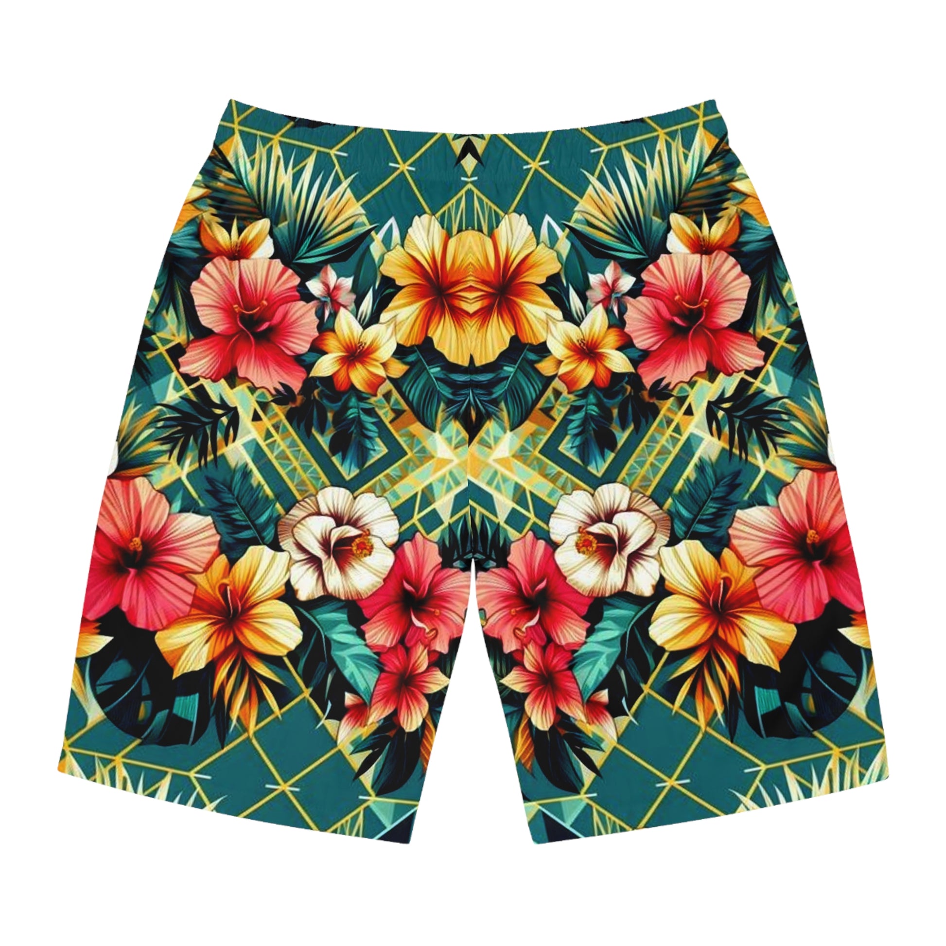 Add a personalized touch to your wardrobe with these custom board shorts for men. Made with light, breathable polyester fabric, these shorts feature 2 side pockets for daily convenience, an elastic waistband, and a black drawstring.