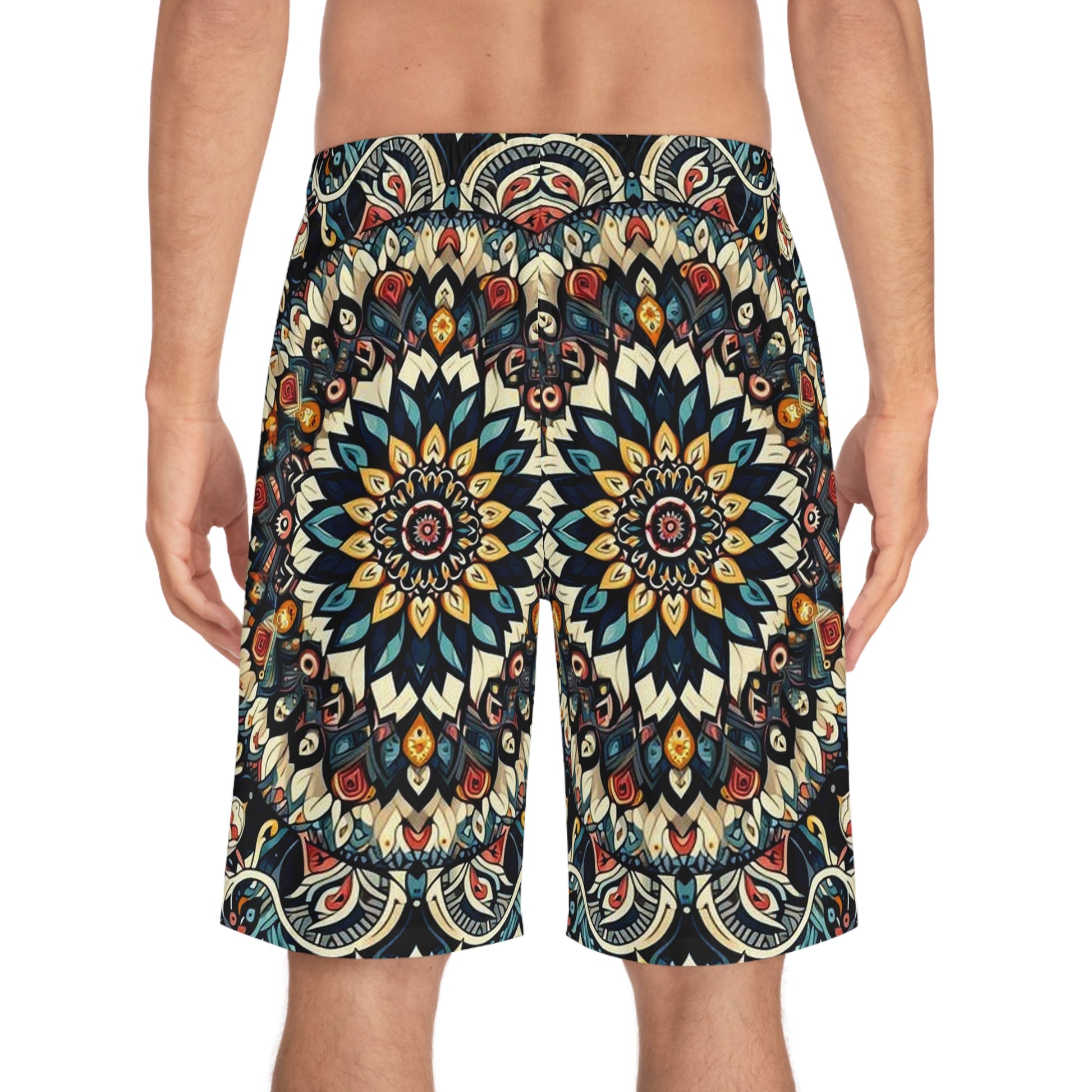 Add a personalized touch to your wardrobe with these custom board shorts for men. Made with light, breathable polyester fabric, these shorts feature 2 side pockets for daily convenience, an elastic waistband, and a black drawstring.