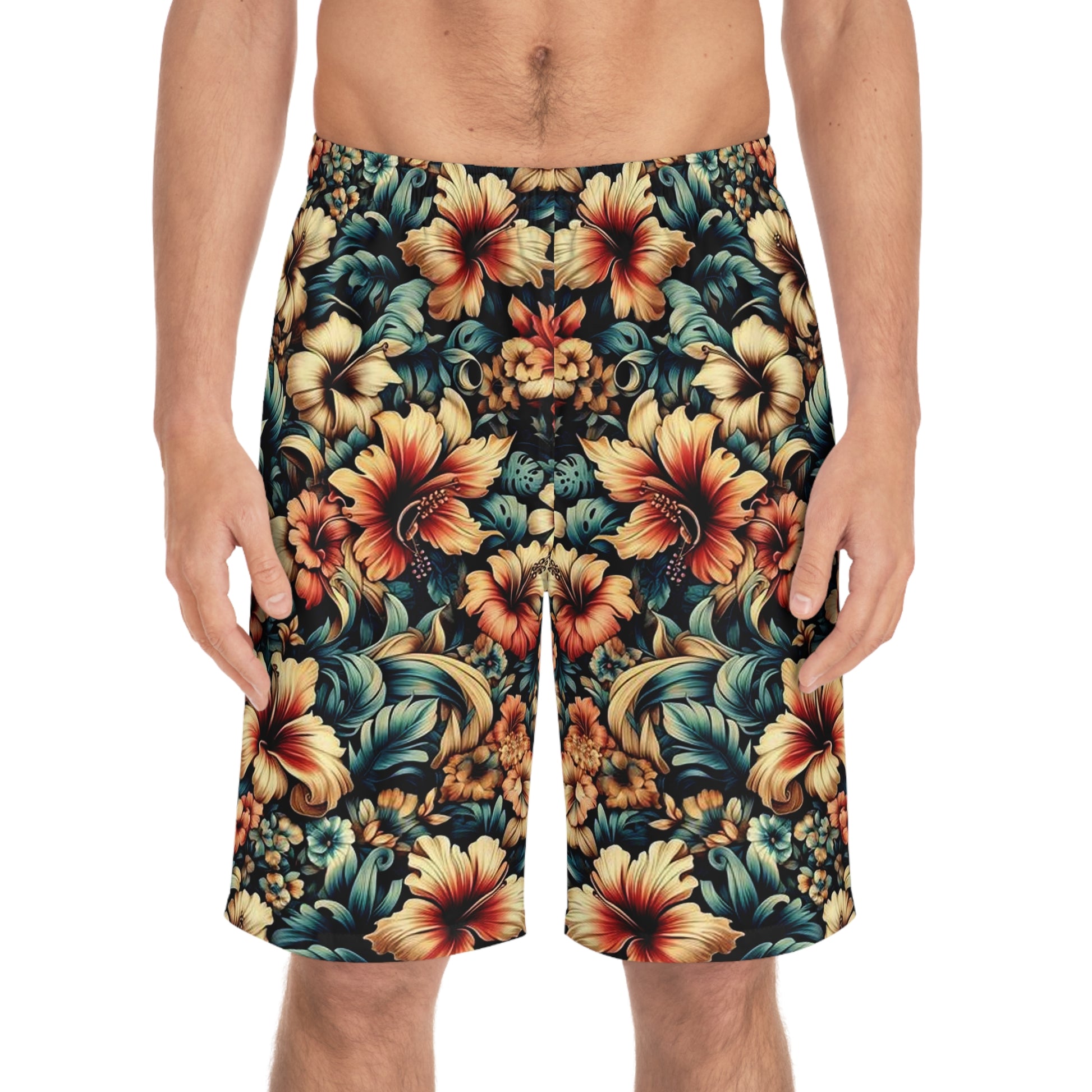 Add a personalized touch to your wardrobe with these custom board shorts for men. Made with light, breathable polyester fabric, these shorts feature 2 side pockets for daily convenience, an elastic waistband, and a black drawstring.