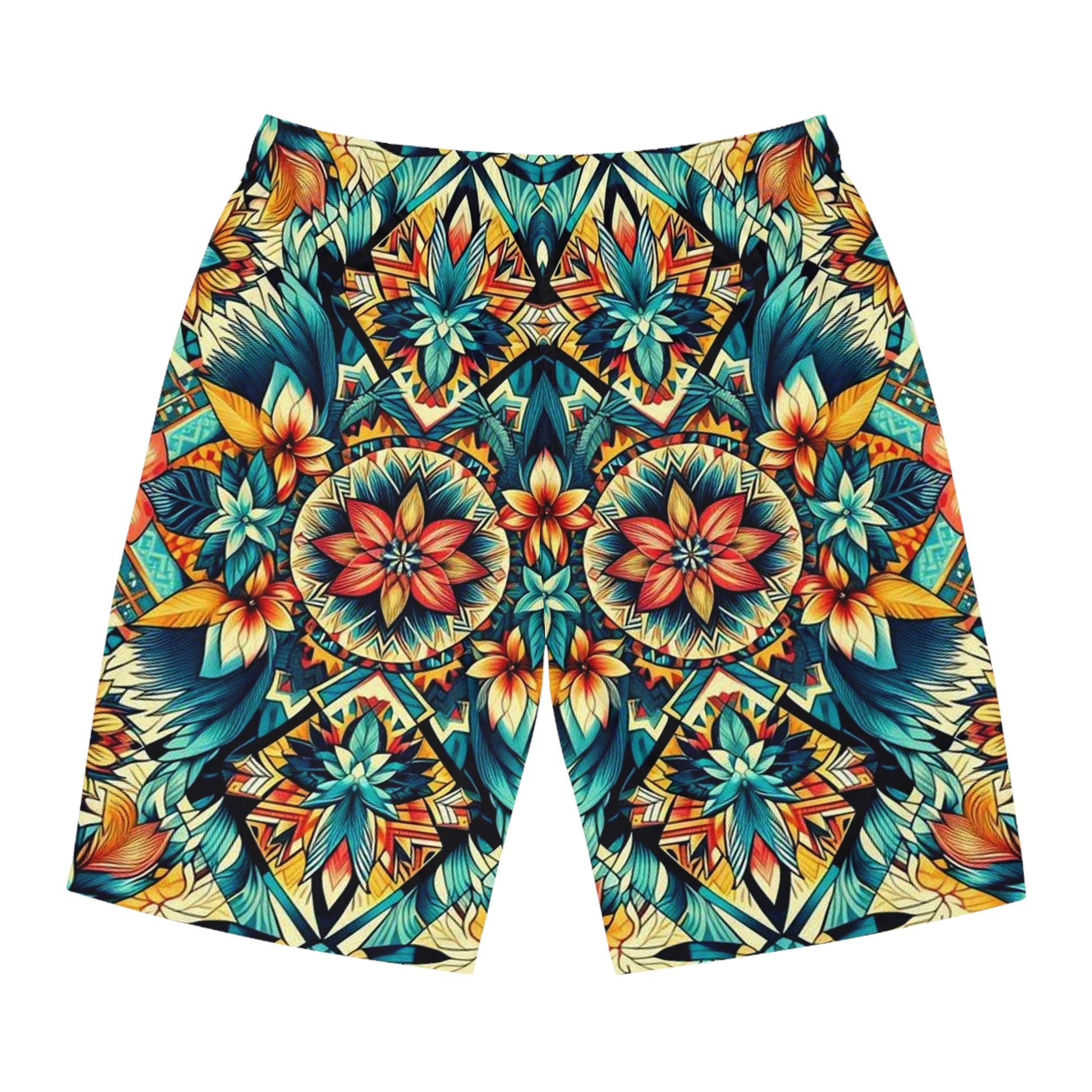 Add a personalized touch to your wardrobe with these custom board shorts for men. Made with light, breathable polyester fabric, these shorts feature 2 side pockets for daily convenience, an elastic waistband, and a black drawstring.