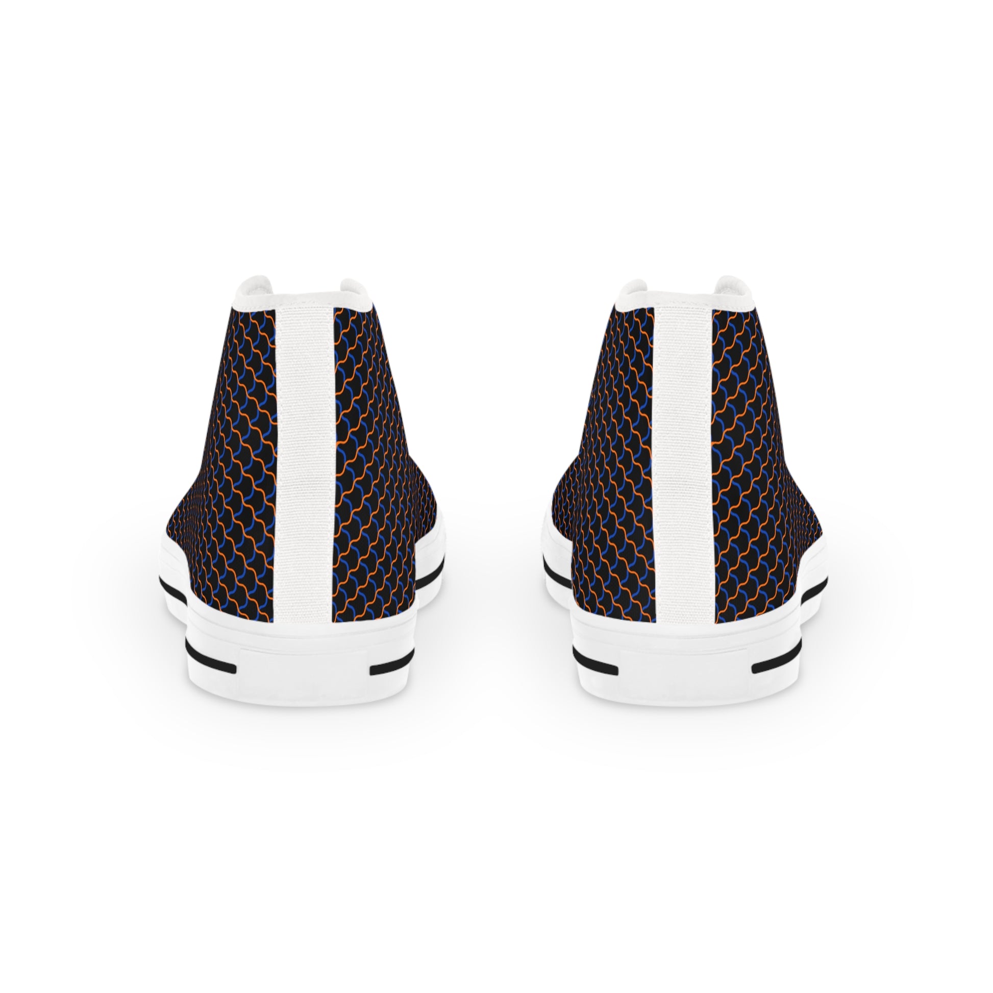 Made with breathable polyester canvas and featuring hi-poly deodorant memory foam insoles, these women's high top sneakers bear all the marks of an awesome shoe. Choose between black or white sole and laces, and enjoy the silver metal eyelets along with the lace-up closure.