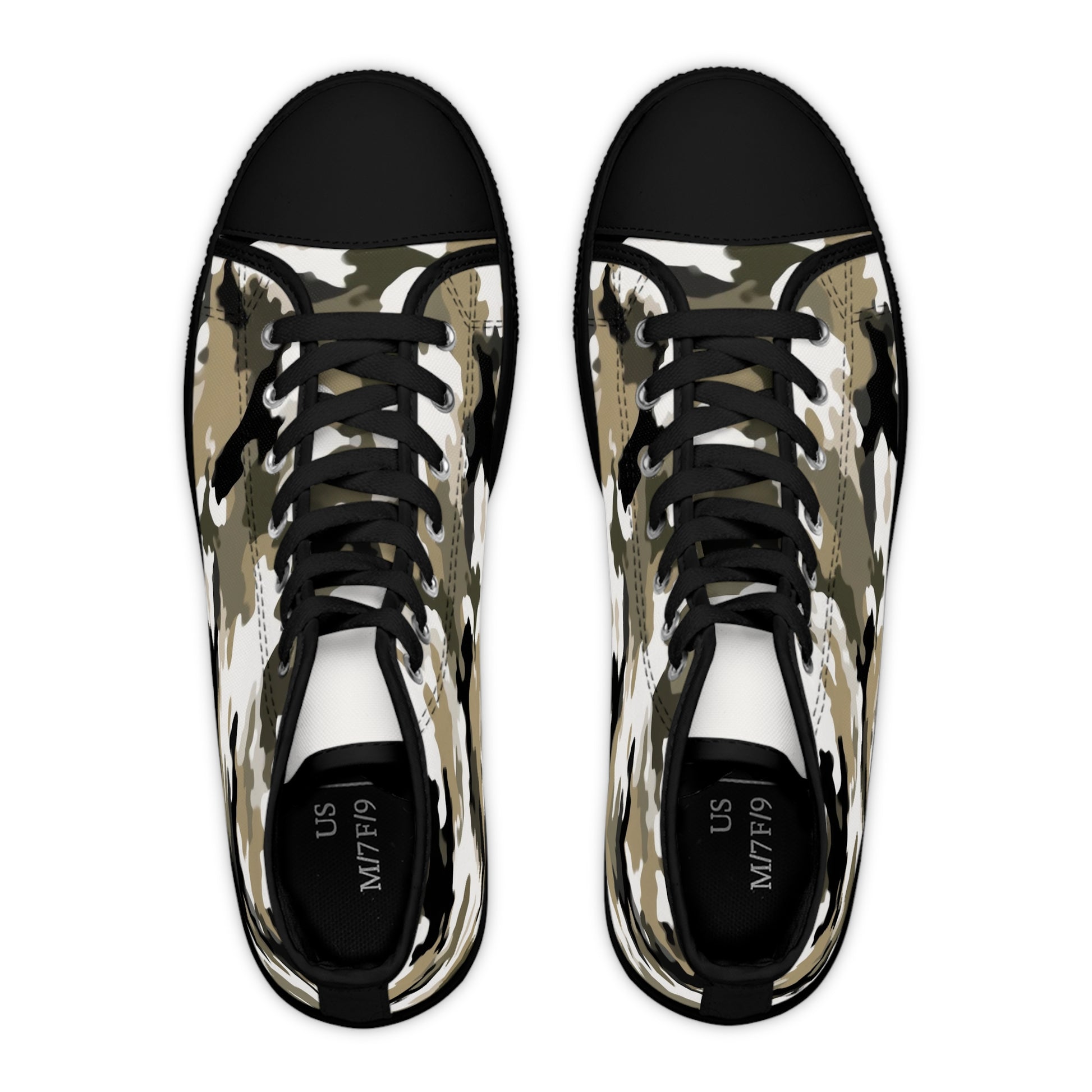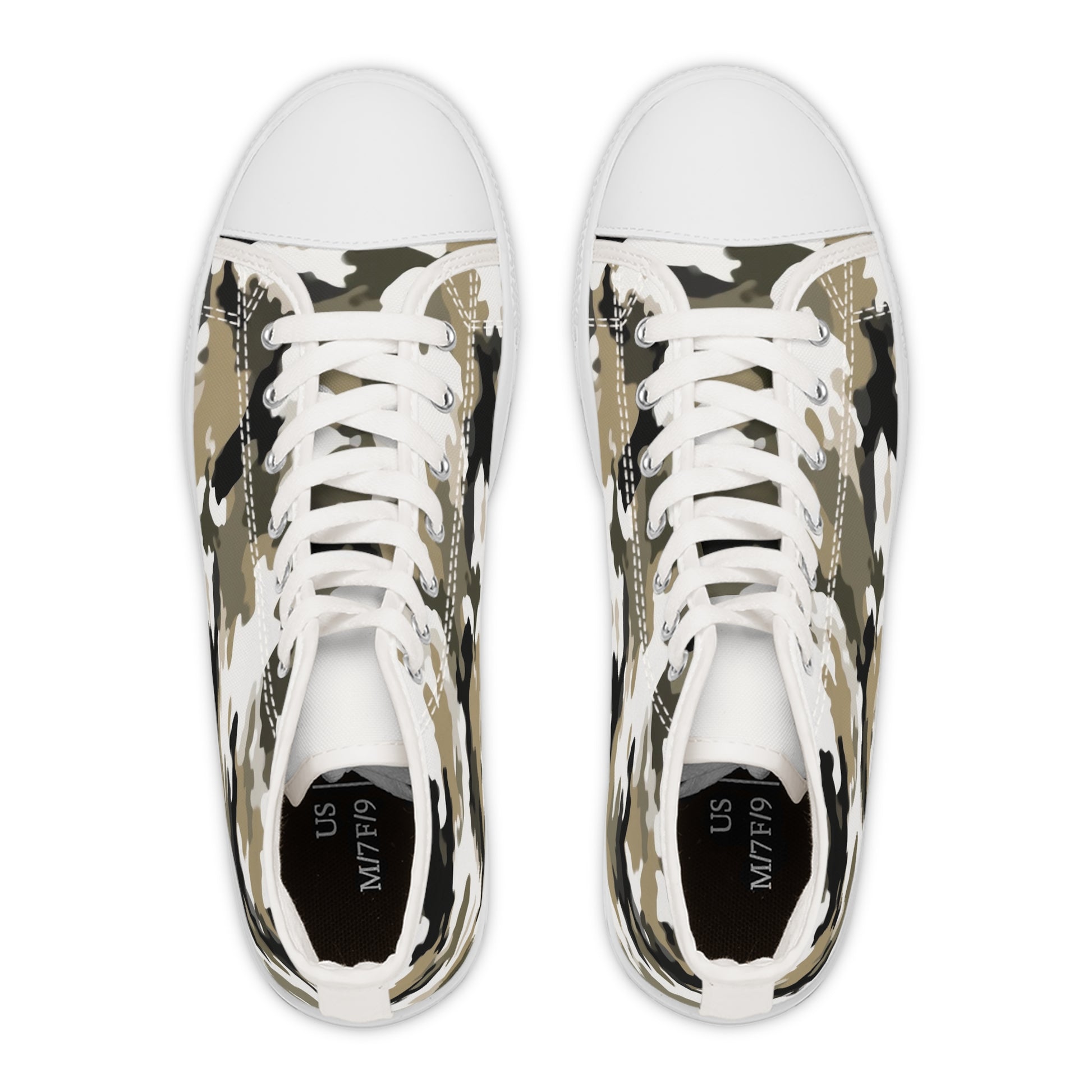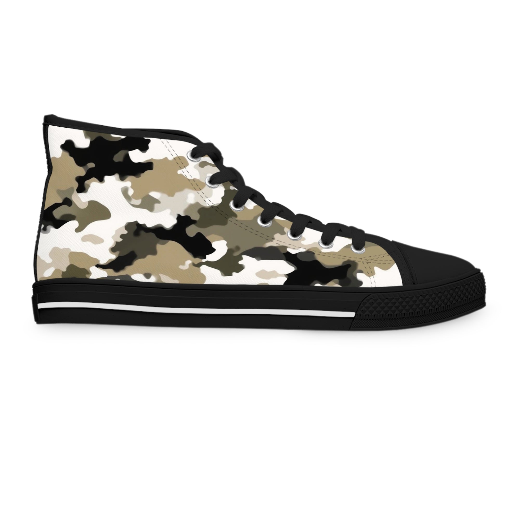 Made with breathable polyester canvas and featuring hi-poly deodorant memory foam insoles, these women's high top sneakers bear all the marks of an awesome shoe. Choose between black or white sole and laces, and enjoy the silver metal eyelets along with the lace-up closure.