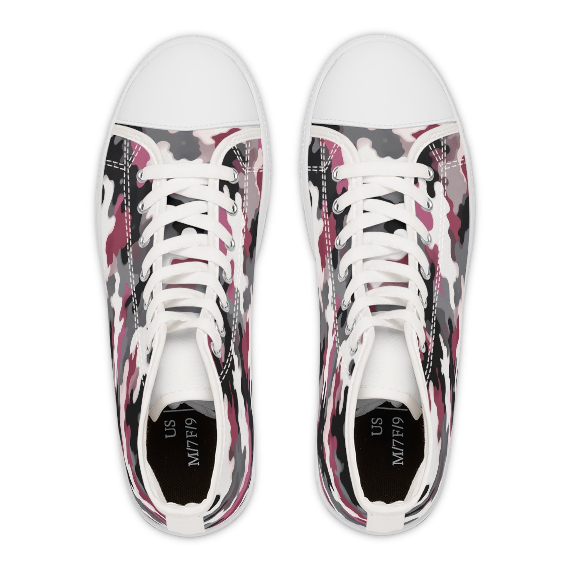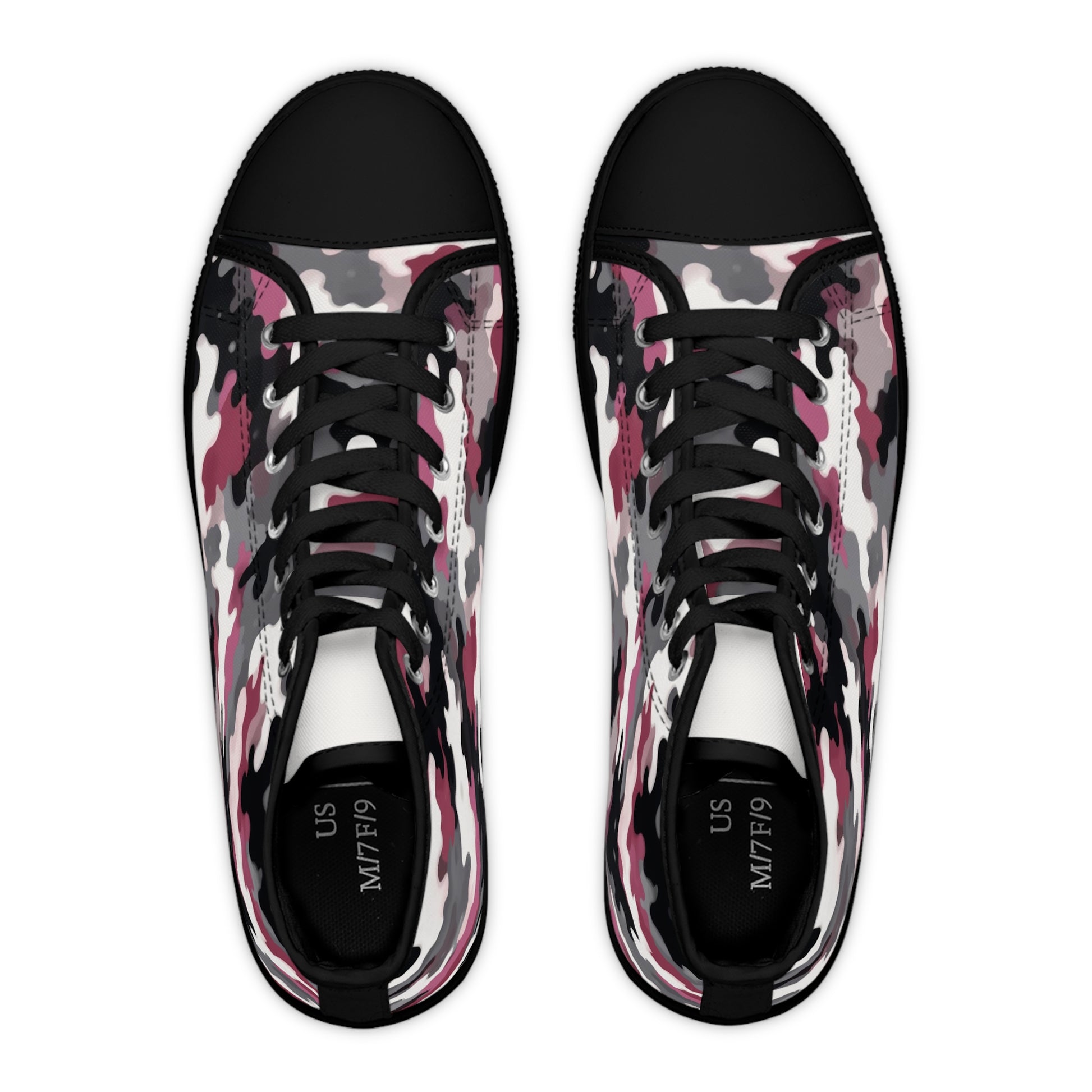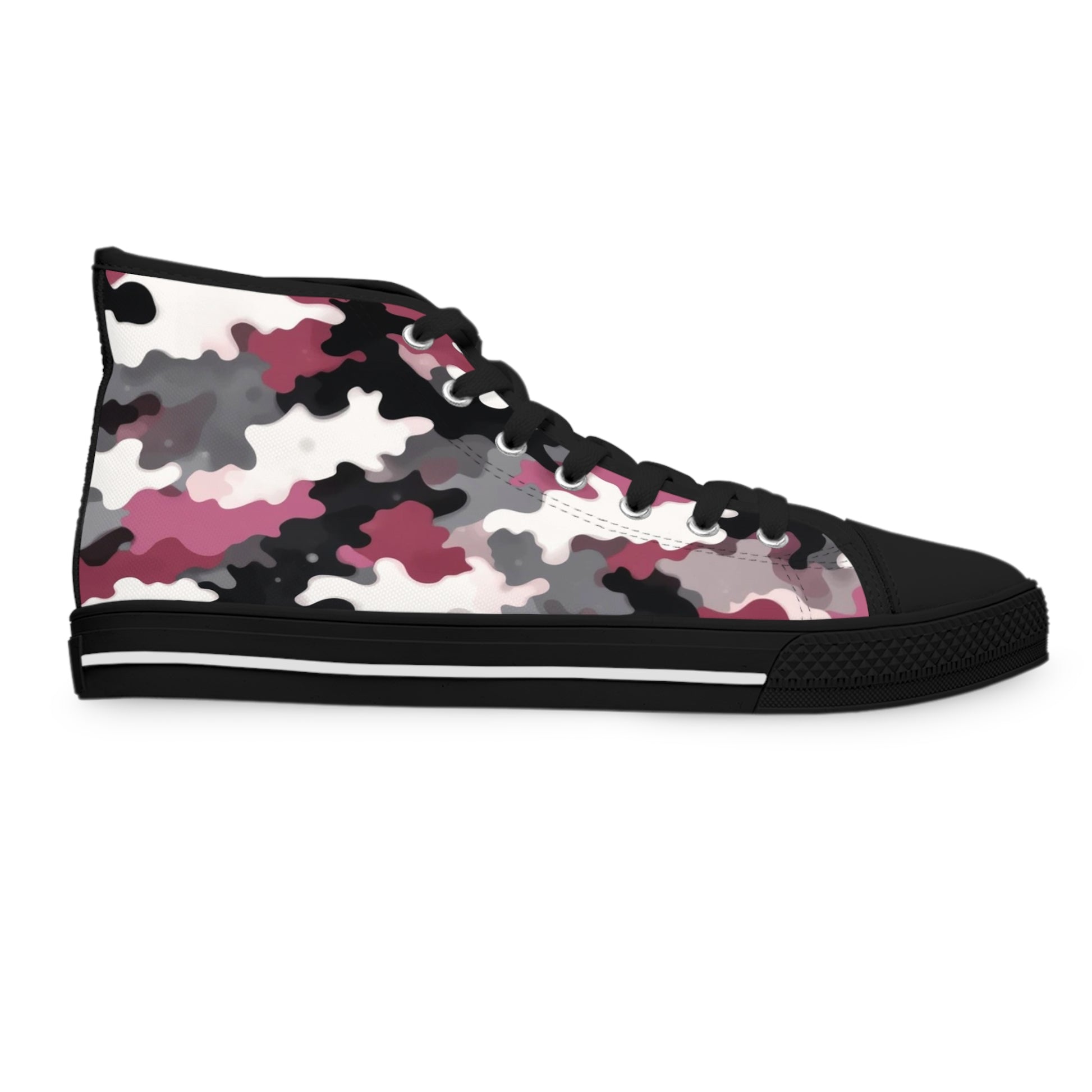 Made with breathable polyester canvas and featuring hi-poly deodorant memory foam insoles, these women's high top sneakers bear all the marks of an awesome shoe. Choose between black or white sole and laces, and enjoy the silver metal eyelets along with the lace-up closure.