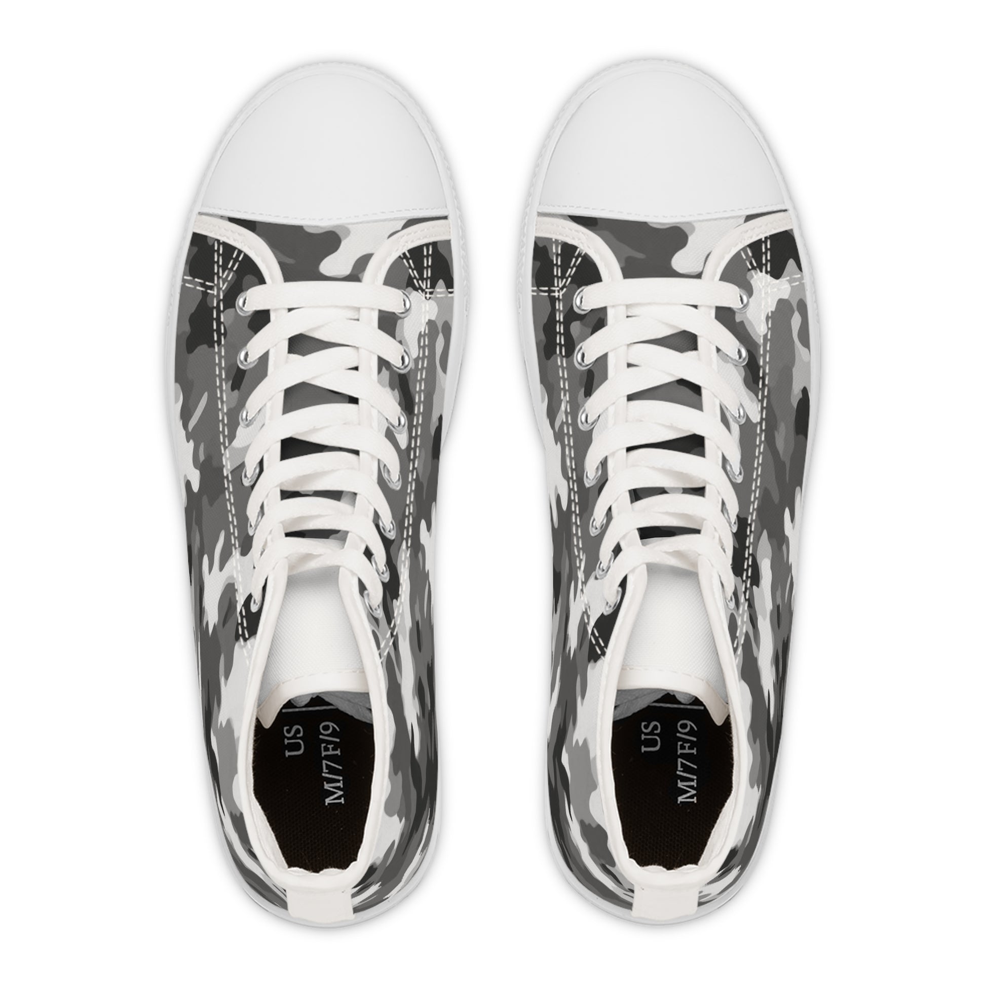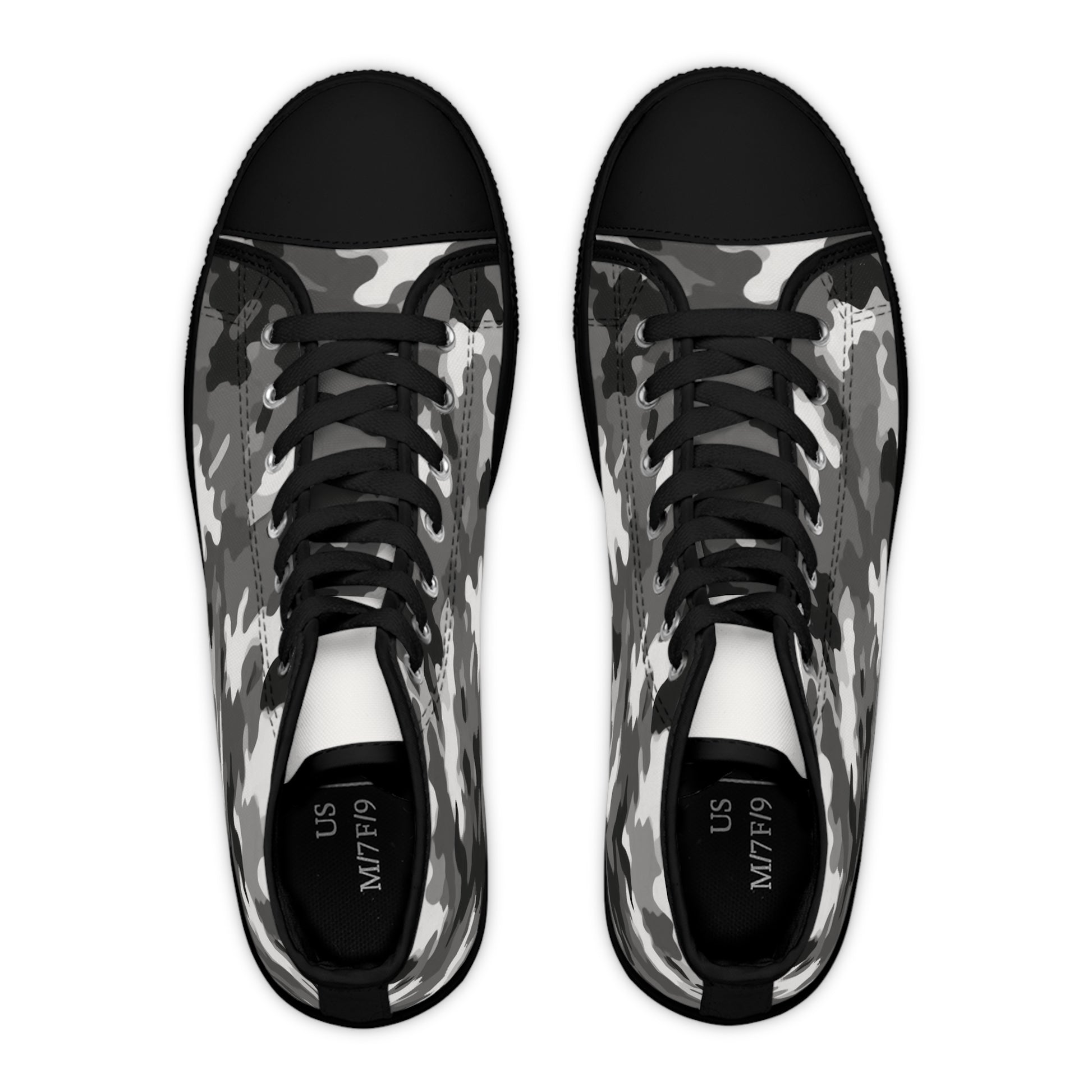 Made with breathable polyester canvas and featuring hi-poly deodorant memory foam insoles, these women's high top sneakers bear all the marks of an awesome shoe. Choose between black or white sole and laces, and enjoy the silver metal eyelets along with the lace-up closure.