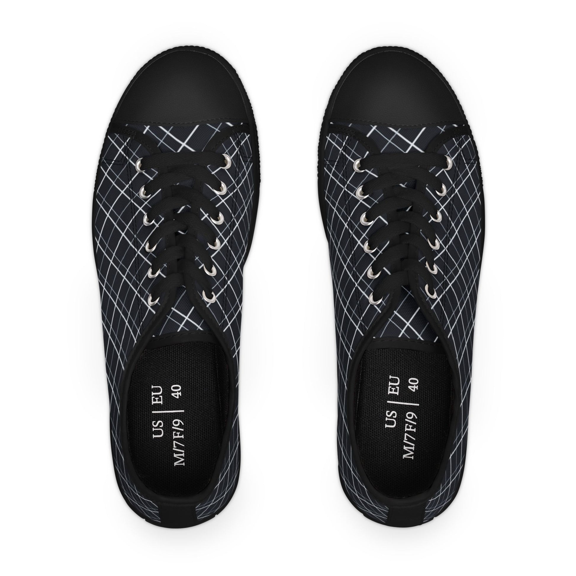 Made with breathable polyester canvas and featuring hi-poly deodorant memory foam insoles, these women's low top sneakers bear all the marks of an awesome shoe. Choose between black or white sole and laces, and enjoy the silver metal eyelets along with the lace-up closure.