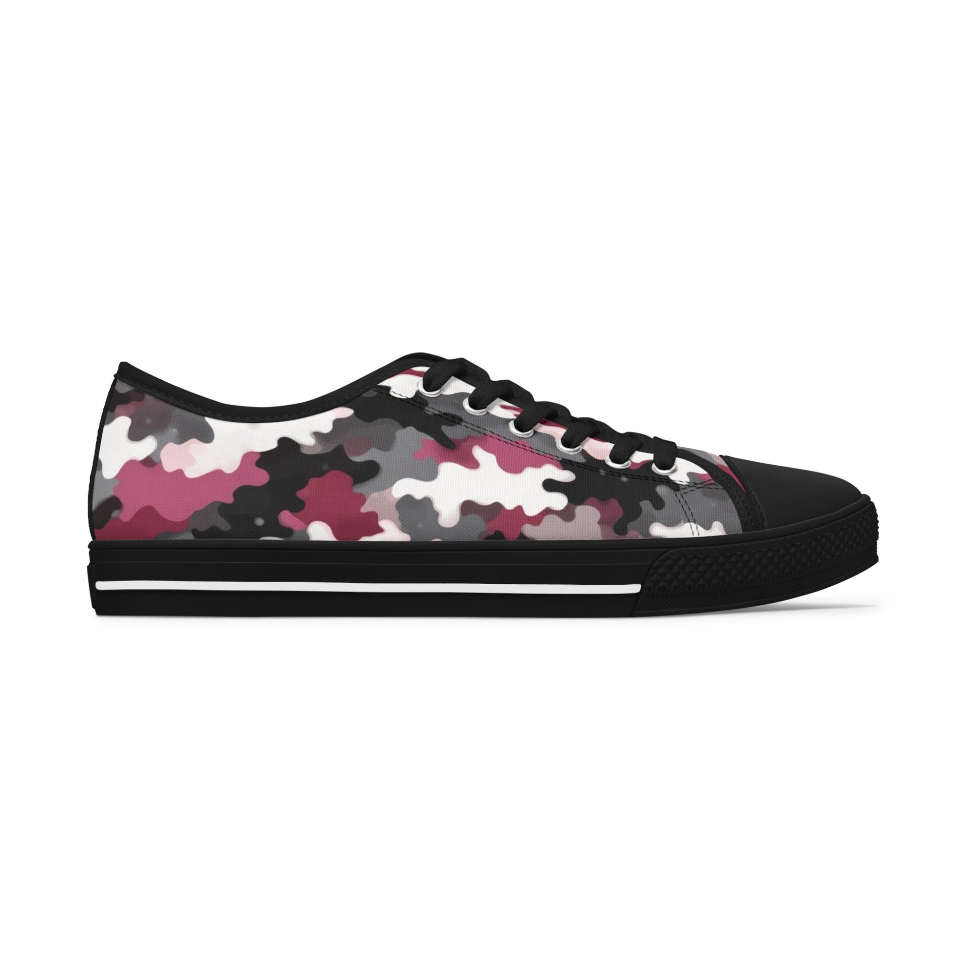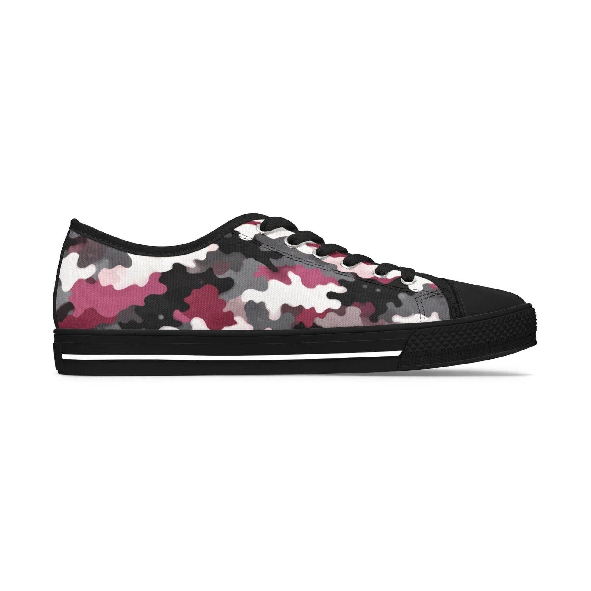 Made with breathable polyester canvas and featuring hi-poly deodorant memory foam insoles, these women's low top sneakers bear all the marks of an awesome shoe. Choose between black or white sole and laces, and enjoy the silver metal eyelets along with the lace-up closure.